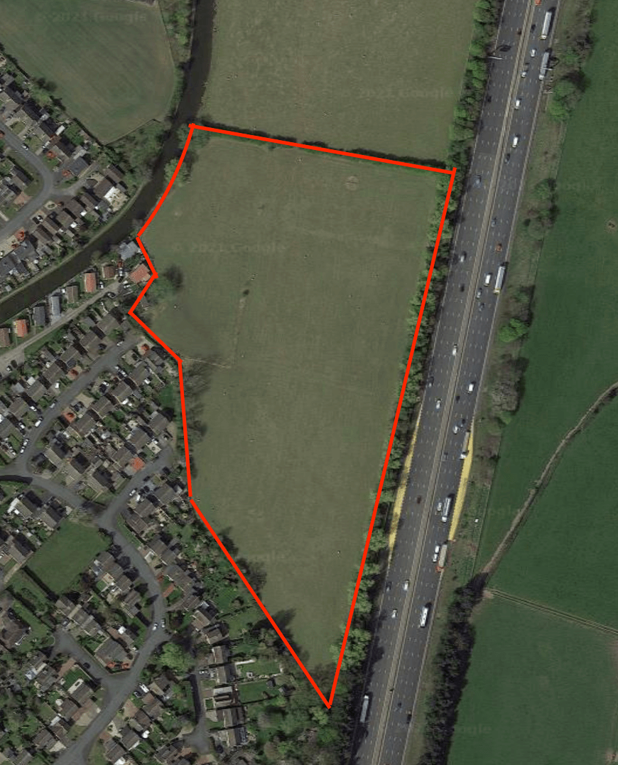 The Site extends to 4.2 hectares and comprises vacant agricultural land, which is currently used to graze sheep for a third of the year. The Site is bound by a hedgerow along the northern boundary, a strip of broadleaved woodland to the east and a dense continuous scrub along the southern boundary with residential properties of Oakley Close, Kentmere Close, Prescott Drive and Little Marsh Grove. The Site is bound on three sides by existing built development. To the south and south west, the Site adjoins an existing residential area of Penkridge made up of late 20th Century development focussed around Cherrybrook Drive. The western boundary of the Site adjoins the Staffordshire and Worcestershire Canal and towpath, and the M6 Motorway runs along the eastern boundary of the Site. There is an existing 3 metre high acoustic fence and semi mature tree planting separating the Site from the M6 Motorway. The northern boundary separates the Site from open countryside, currently in use for agricultural purposes.
